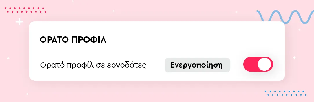 Φτιάξε το προφίλ σου. Έχοντας ένα ολοκληρωμένο προφίλ στο νέο kariera.gr είναι πολύ πιο εύκολο να έχεις όλες τις προσωπικές σου πληροφορίες και προτιμήσεις μαζεμένες σε ένα σημείο. Και με ένα κλικ μπορείς να κάνεις το προφίλ σου ορατό σε εργοδότες , για να βλέπουν όσα έχεις αποθηκεύσει, και να έρχονται σε επαφή μαζί σου για ανοιχτές θέσεις εργασίας.