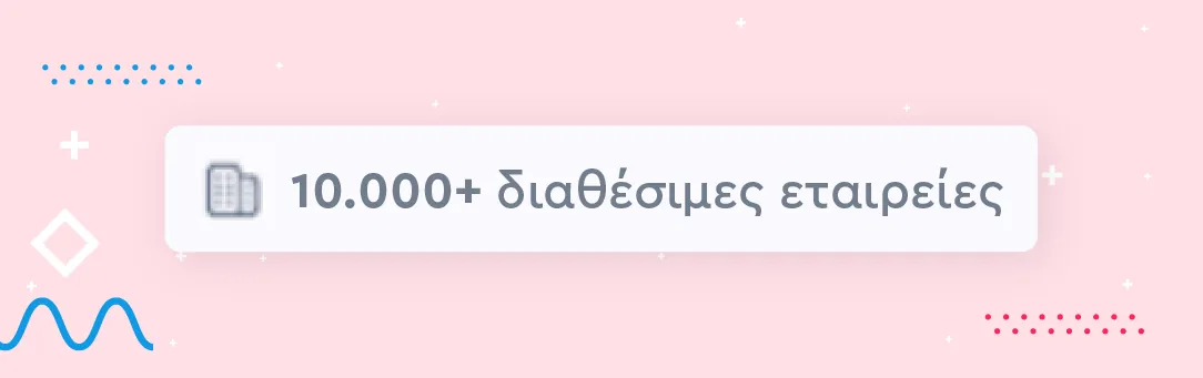 Στην αρχή του 2023, περισσότερες από 10.000 εταιρείες βρίσκονταν στη βάση του kariera.gr . Σίγουρα με τη σωστή έρευνα μπορείς να βρεις αυτή που θα σε υποδεχτεί στο νέο σου ξεκίνημα.