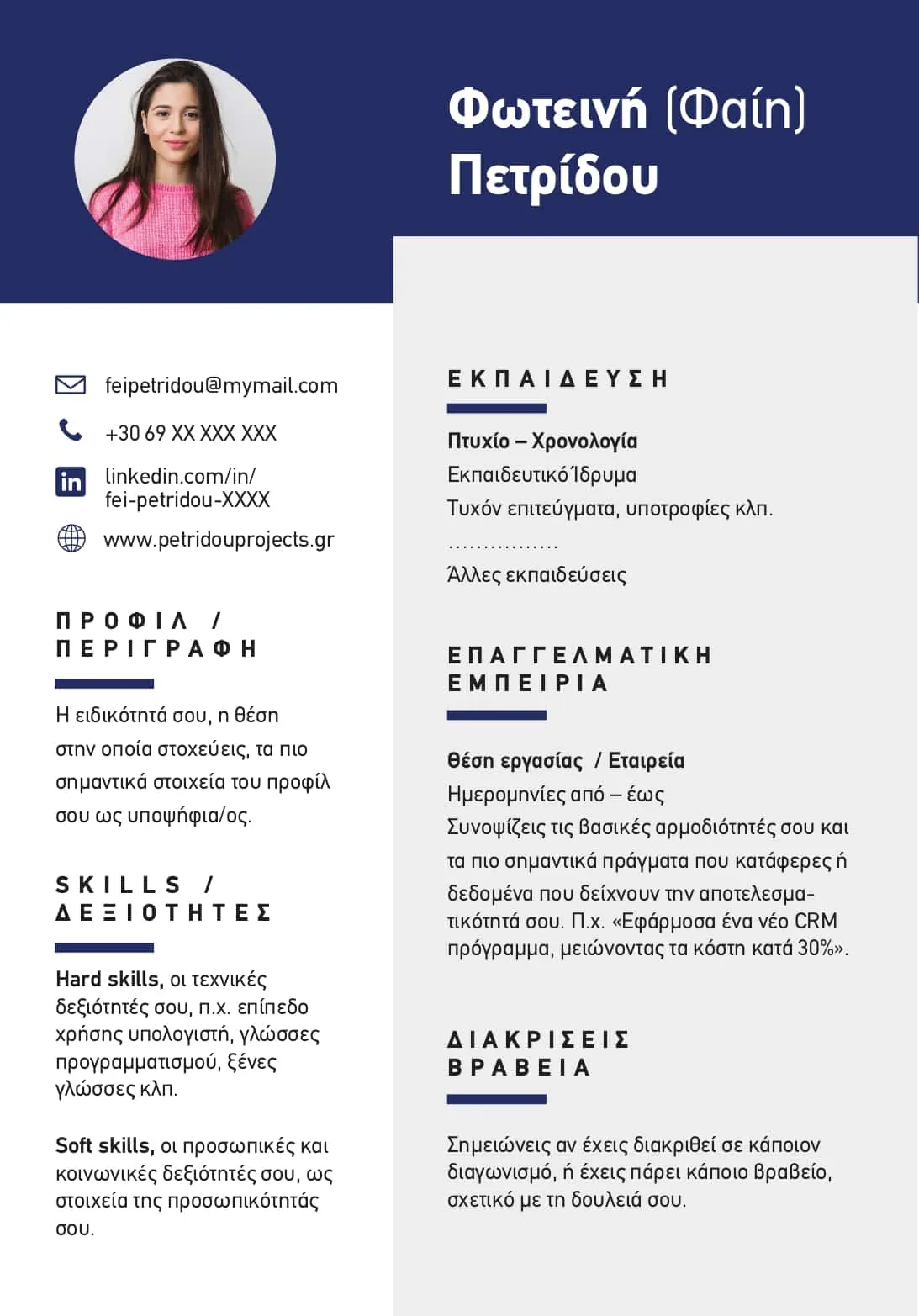 2. Αν μια επιτυχία σου είναι μια διάκριση που πήρες ή ένα βραβείο , μπορείς να τα βάλεις σε ένα ξεχωριστό section με επικεφαλίδα ΔΙΑΚΡΙΣΕΙΣ ΚΑΙ ΒΡΑΒΕΙΑ.