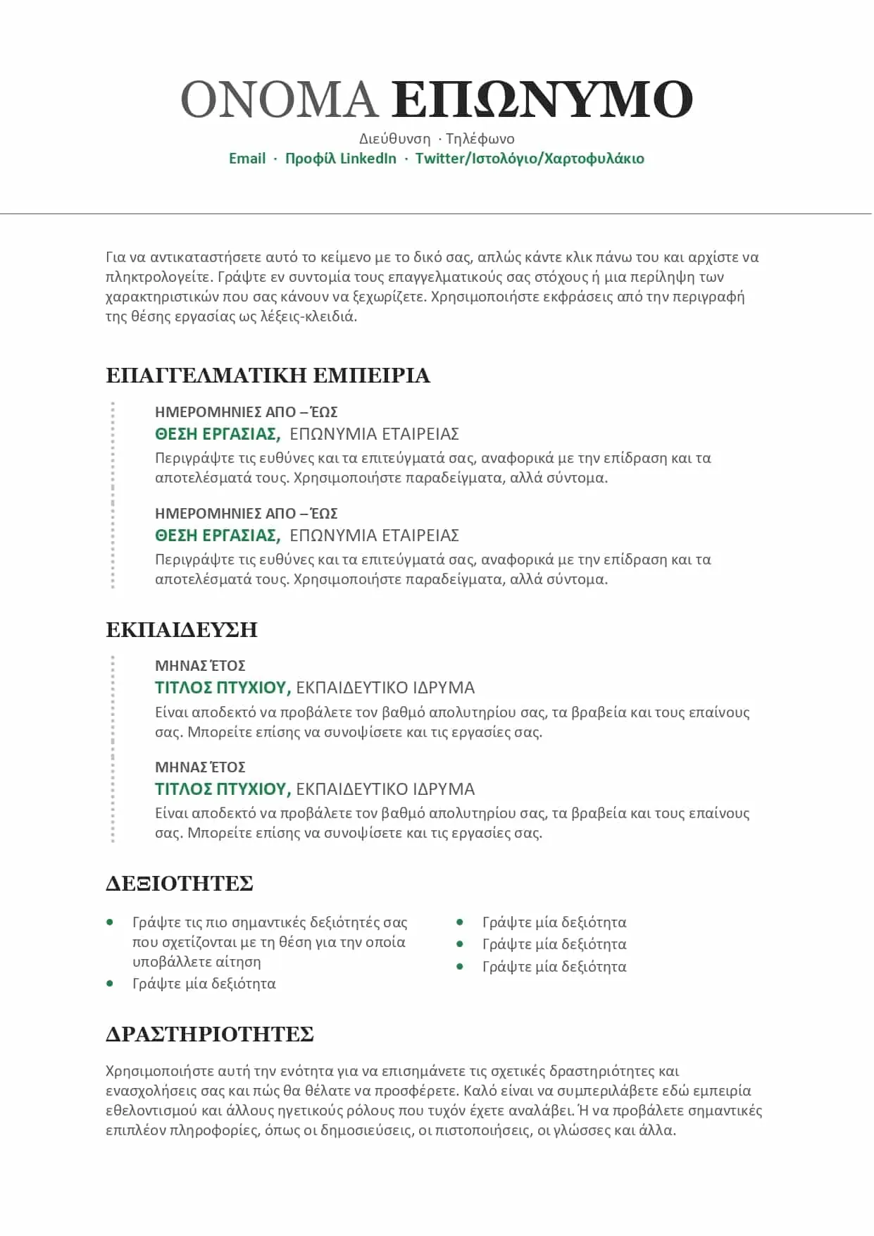 Εδώ θα δεις πώς θα κάνεις το βιογραφικό σου σημείωμα λίγο πιο ξεχωριστό, λίγο πιο ευχάριστο στο μάτι. Υπάρχει μια μεγάλη ποικιλία από έτοιμα -και δωρεάν!- templates που θα σε βοηθήσουν.