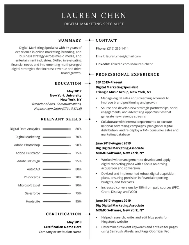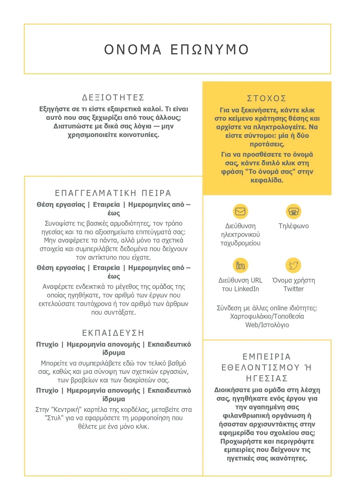 Δώσε μεγάλη προσοχή στο να προσαρμόσεις όλα τα πεδία με τις δικές σου πληροφορίες, βάζοντας τις απαραίτητες πινελιές που θα αναδείξουν τη μοναδικότητα του βιογραφικού σου. Αν κάποιο από τα πεδία που περιλαμβάνει ένα έτοιμο template δεν το χρειάζεσαι, αφαίρεσέ το τελείως.