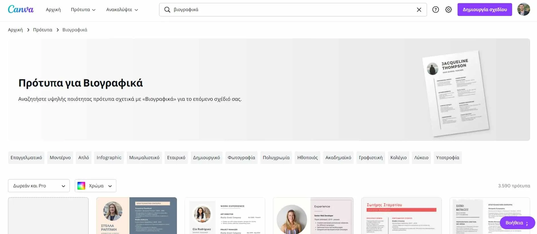 Όπως θα δεις, στα περισσότερα από αυτά τα εργαλεία, μπορείς να επιλέξεις και το στιλ βιογραφικού που σε εκφράζει πιο πολύ: Επαγγελματικό; Απλό; Μοντέρνο; Δημιουργικό;