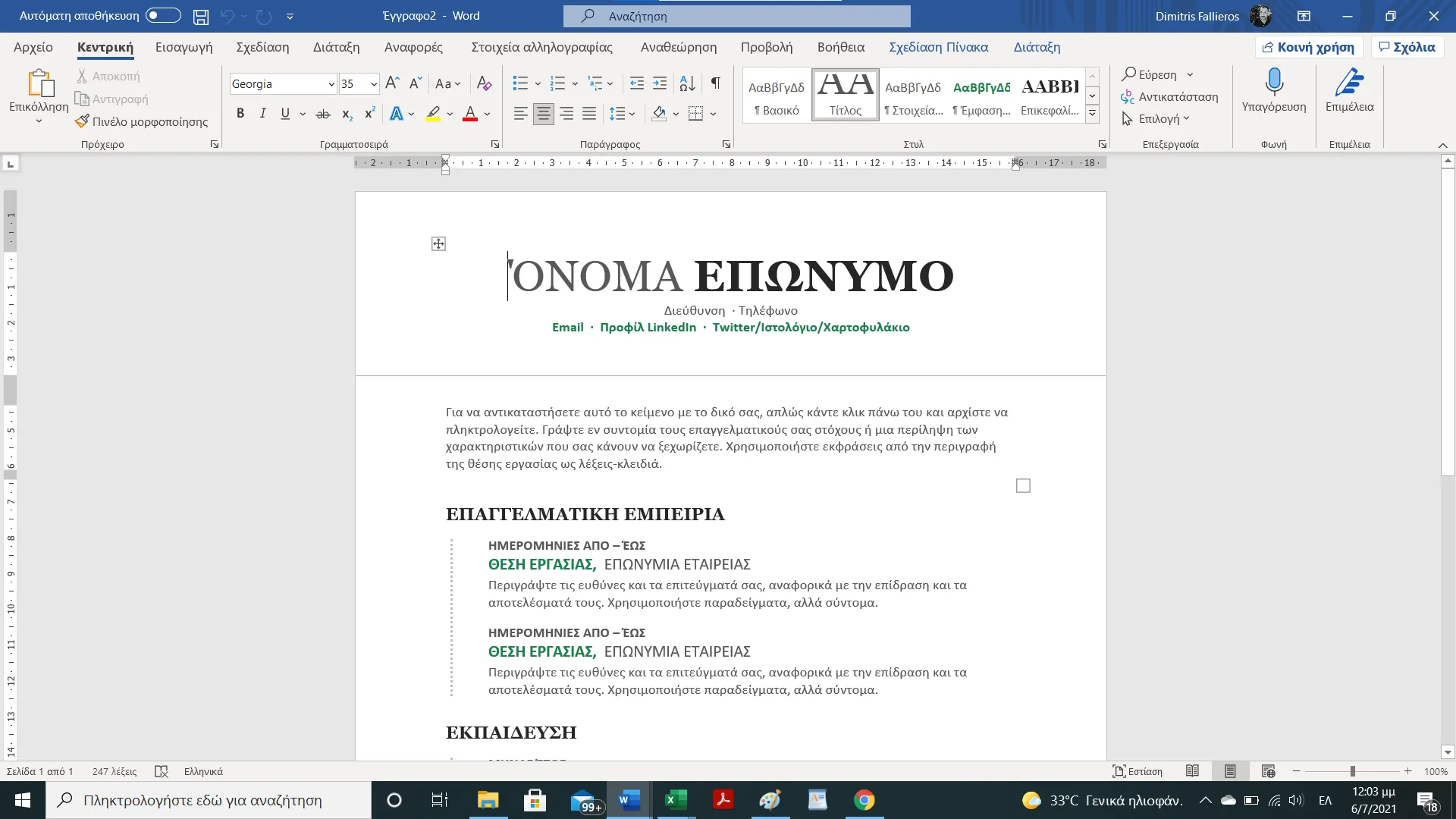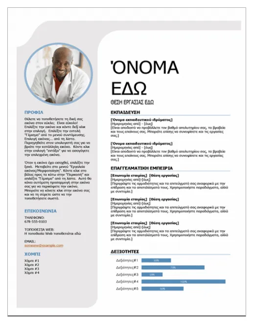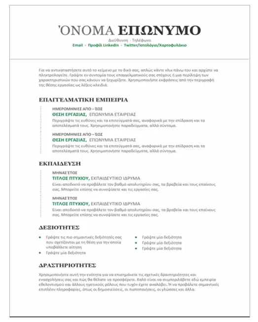 Tip: Είτε φτιάχνετε για πρώτη φορά βιογραφικό είτε κάνετε revise σε αυτό που έχετε ήδη, το πιο εύκολο είναι να χρησιμοποιήσετε ένα έτοιμο πρότυπο/template. Ένα template, σας έχει έτοιμη τη δομή και εσείς απλώς το προσαρμόζετε με τις δικές σας πληροφορίες.