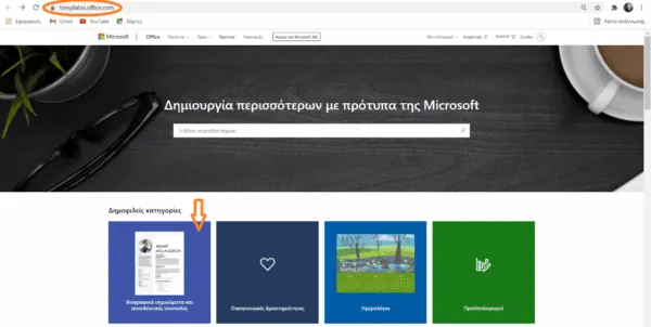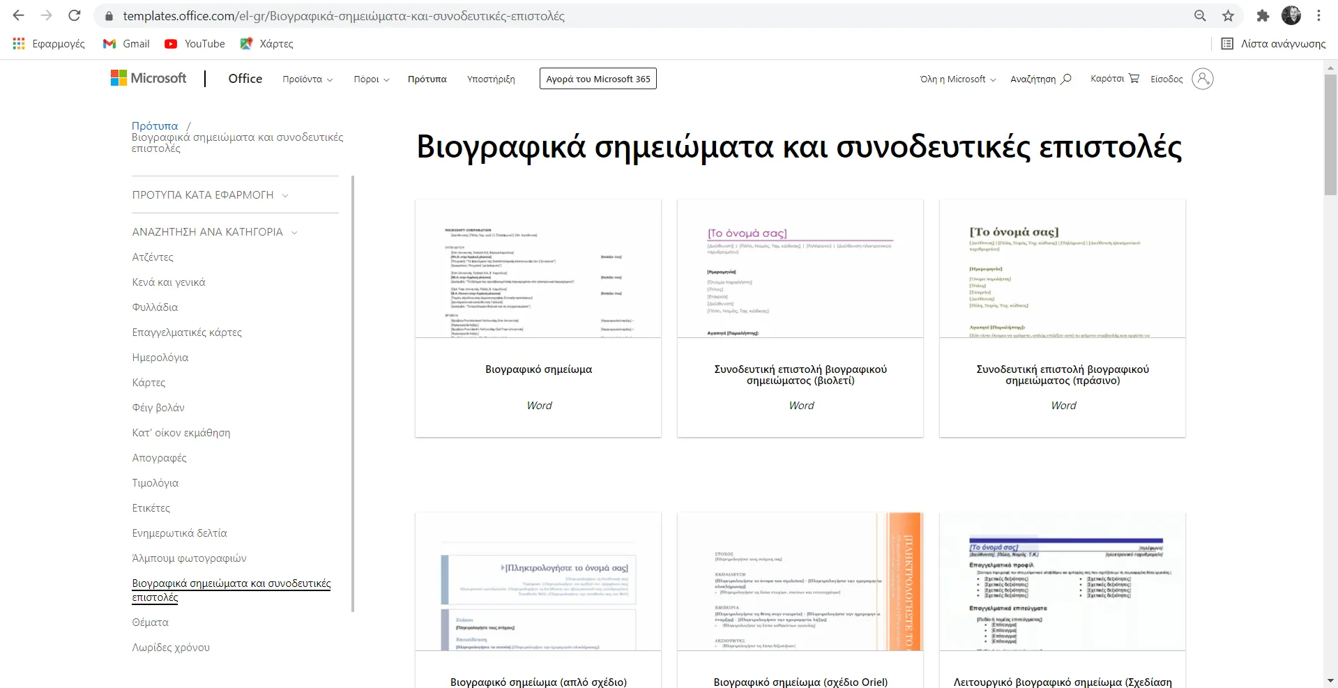 Ανοίξτε τη σελίδα templates.office.com και πατήστε « Βιογραφικά σημειώματα και συνοδευτικές επιστολές» .
