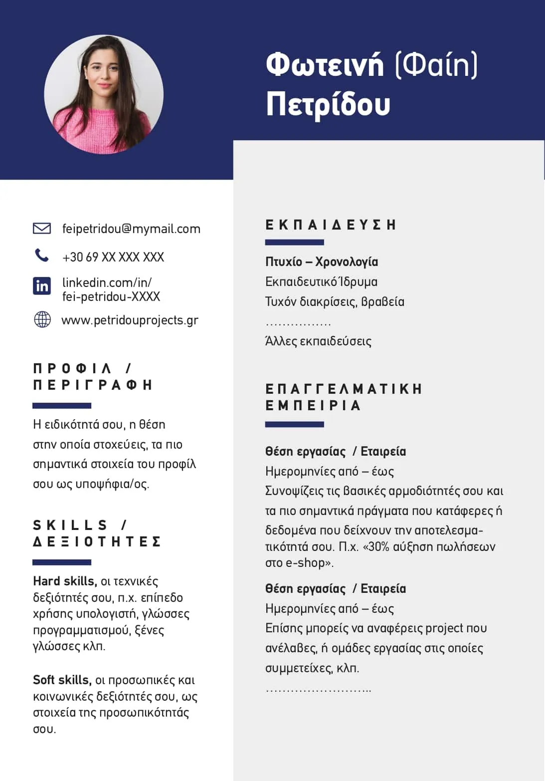 Δες το βιογραφικό σου σαν ένα δικό σου προϊόν/υπηρεσία που πρέπει να το «πουλήσεις» καλά . Οι πωλησιακές σου ικανότητες θα κριθούν από το πόσο καλά, και χωρίς λάθη, παρουσιάζεις τον εαυτό σου και τις δεξιότητές σου σε μία σελίδα , όπως αυτή παρακάτω:
