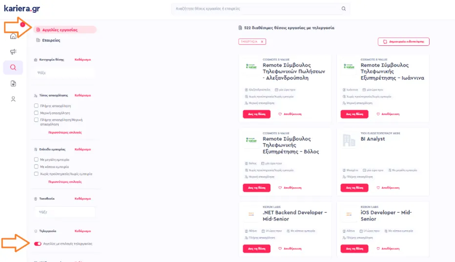 Ενεργοποίησε το φίλτρο « Αγγελίες με επιλογές τηλεργασίας »