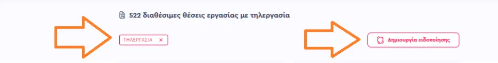 Μπορείς να πατήσεις και « Δημιουργία ειδοποίησης » για να σε ειδοποιούμε κάθε φορά που δημοσιεύεται μια νέα αγγελία με δυνατότητα τηλεργασίας, που ταιριάζει με τα κριτήριά σου!
